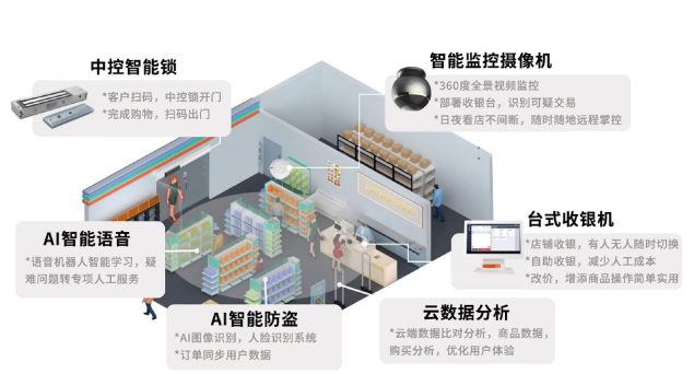 十分嘉目前可运用24小时无人智慧值守技术,打造无人+有人的合体经营模式,无人零售系统可根据商家具体情况随时开启,无人有人模式轻松切换,切实帮助商家做到24小时无人零售。无人零售系统由智能门禁防盗系统、智能收银系统、AI视觉分析防盗系统、AI语音防盗系统、智能人工客服调度系统、云数据分析中心组成,全方位保证店铺无人运营,妥善处理订单,在额外增加营收的同时减少至少2名店员的成本支出,按照人均4000元/月的工资成本计算全年可节省约96000元人力成本支出。